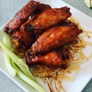 6 Smoked Wings with the following options: Brown Butter Buffalo, BBQ, Lemon Pepper Dry Rub, Pineapple Jalapeno